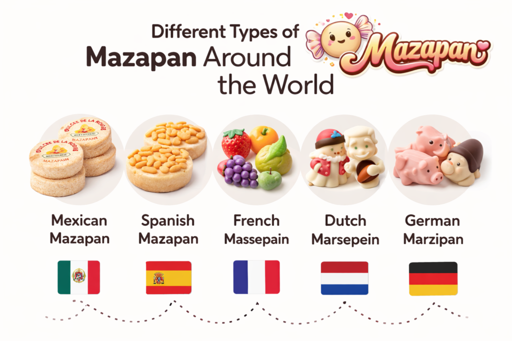 Mazapan comes in different forms depending on where it is made. Each version has its own unique taste and texture, making it interesting to explore. Spanish mazapan is known for its smooth and slightly chewy texture, often shaped into decorative figures and baked lightly.
